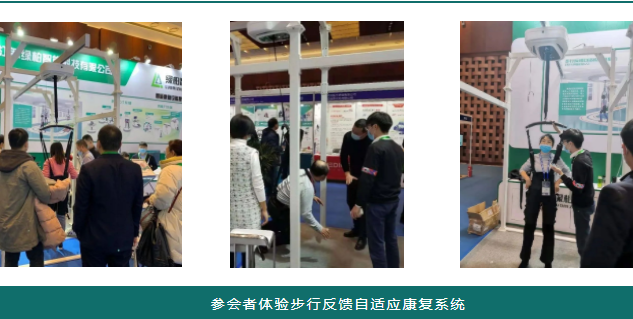 會議過程中,綠柏展位所展出的智能康復(fù)設(shè)備受到了眾多參會者的關(guān)注,尤其是步行反饋自適應(yīng)康復(fù)系統(tǒng),作為國內(nèi)唯一一款可實現(xiàn)實時動態(tài)減重和防跌倒安全保護的步行訓(xùn)練系統(tǒng),其吸引了一眾參會學(xué)者和專家前來體驗。