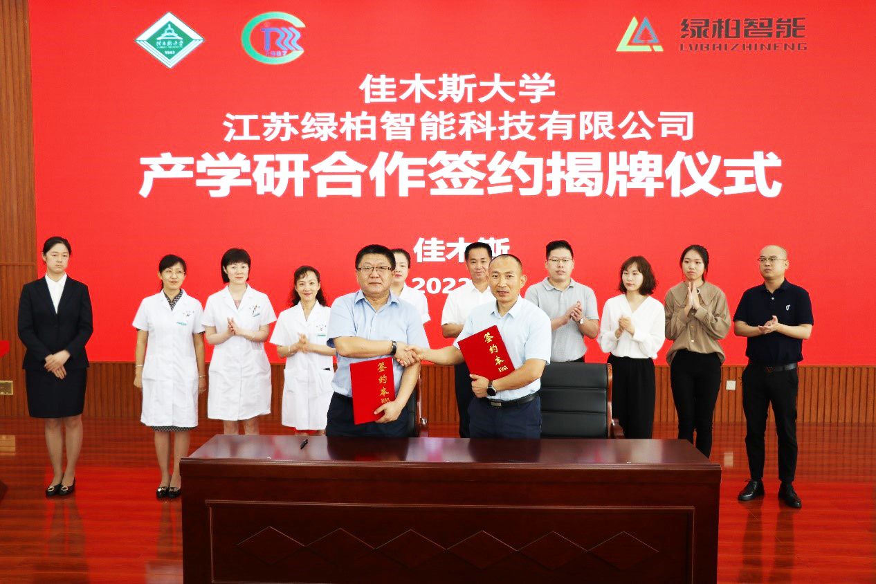 2022年8月1日上午,江蘇綠柏智能科技有限公司與佳木斯大學(xué)產(chǎn)學(xué)研合作簽約揭牌儀式在佳木斯大學(xué)康復(fù)醫(yī)學(xué)院多功能廳舉行。