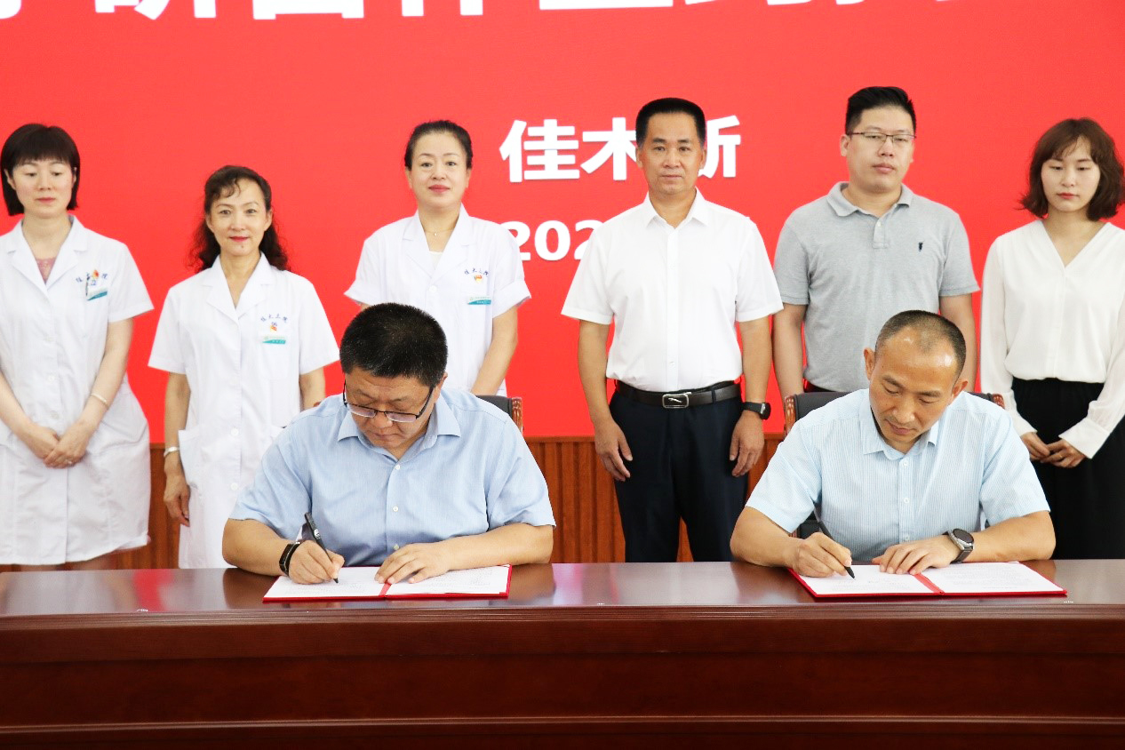 佳木斯大學(xué)康復(fù)醫(yī)學(xué)院黨委書記龐偉與江蘇綠柏智能科技有限公司董事長田開江簽署了合作協(xié)議。