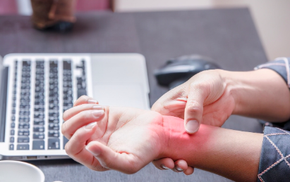 - 03 - 腱鞘炎如何治療? 1.休息,減少病患部位的頻繁活動,注意休息,這是最重要的治療。 2.松解前臂肌群,特別是屈肌和伸肌的走行,可用手也可用筋膜槍。 3.按摩腱鞘:一手握住另一手的腕關節,拇指放于橈側(拇指側)肌腱上,被握手拇指伸直,做向橈側彎曲動作,此時垂直于橈側肌腱做動態按摩,按摩到感覺手腕感輕松。 4.活動肌腱:拇指在外展位,做最大活動范圍的屈曲和伸展。 5.力量訓練:屈腕,伸腕,握力,以及前臂訓練。 6.制動,癥狀嚴重時可以用夾板、石膏等固定限制活動。 7.可口服一些消炎止痛藥。 如何正確預防腱鞘炎 1.在家務勞動時,要注意手指、手腕的正確姿勢,不要過度彎曲或后伸;提拿物品不要過重;手指、手腕用力不要過大。 2.連續工作時間不宜過長,工作結束后要搓搓手指和手腕,再用熱水泡手。 3.冬天洗衣服時最好用溫水,下雪后掃雪也要戴上棉手套,防止手部受寒。 4.對于長期伏案辦公人員來說,應采用正確的工作姿勢,盡量讓雙手平衡,手腕能觸及實物,不要懸空。 5.手腕關節做360度的旋轉;或將手掌用力握拳再放松,來回多做幾次或將手指反壓或手掌反壓幾下,都可以有效緩解手部的酸痛。 6.感覺身體關節疲勞時可以泡熱水澡,舒解一下緊繃的肌肉,或是在酸痛的部位進行熱敷。常使用電腦易患腱鞘炎。